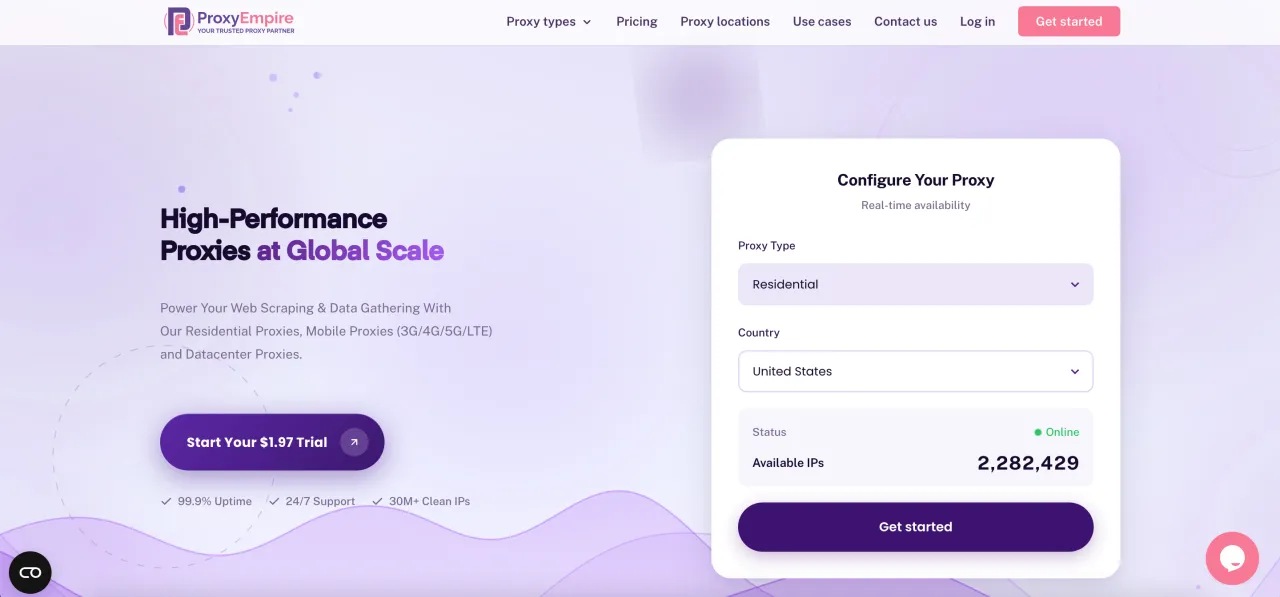 ProxyEmpire is a popular proxy provider certified by EWDCI, which confirms the ethical sourcing of their proxies. They offer all proxy types including residential, mobile, and datacenter. Their pricing is somewhat specific, for example it can be higher than NodeMaven, but you can get a 50% discount using the promo code PROMO50. We also confirmed with ProxyEmpire support that this discount applies to all future subscription payments, not just the first purchase.