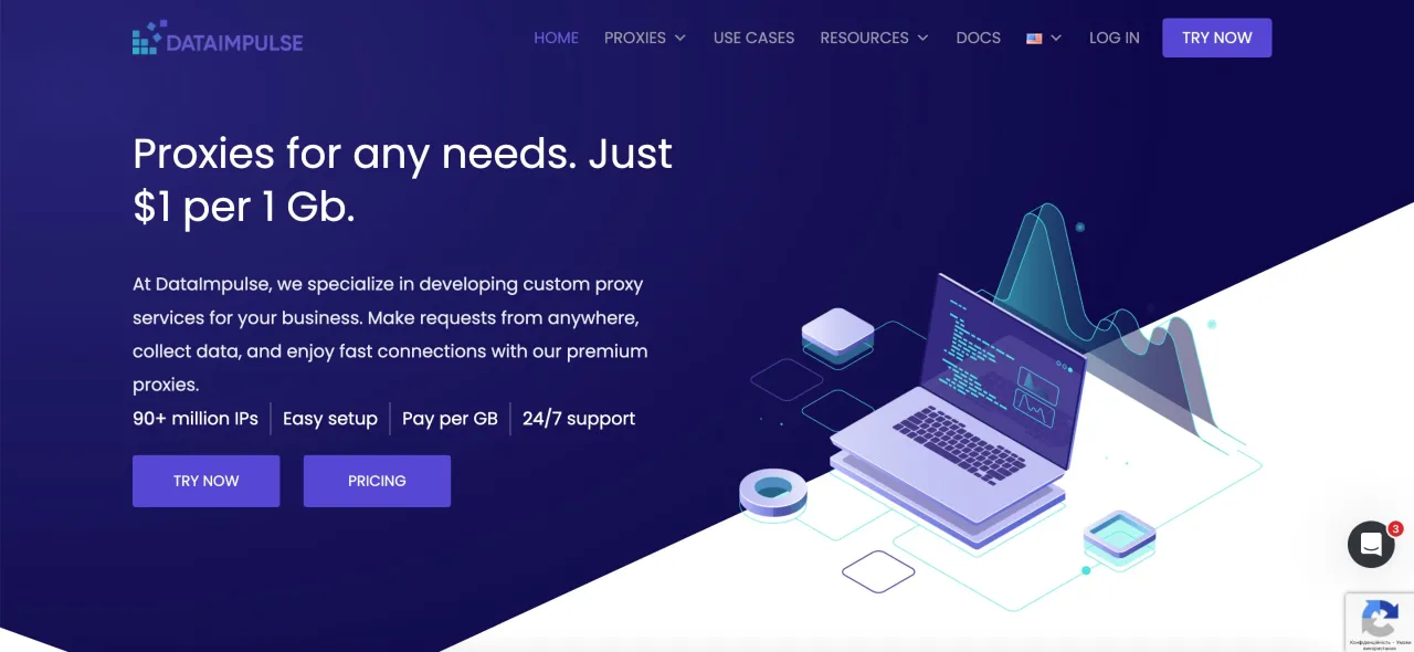 Datacenter rotating proxies: from $3.65 per GB + $0.3 per port
