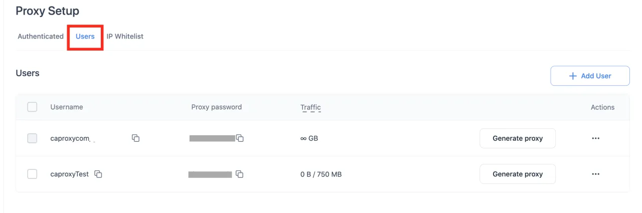 After you configure the users, they will automatically appear when setting up endpoints in the "Authenticated" tab. Now you can proceed with configuring rotating proxies.