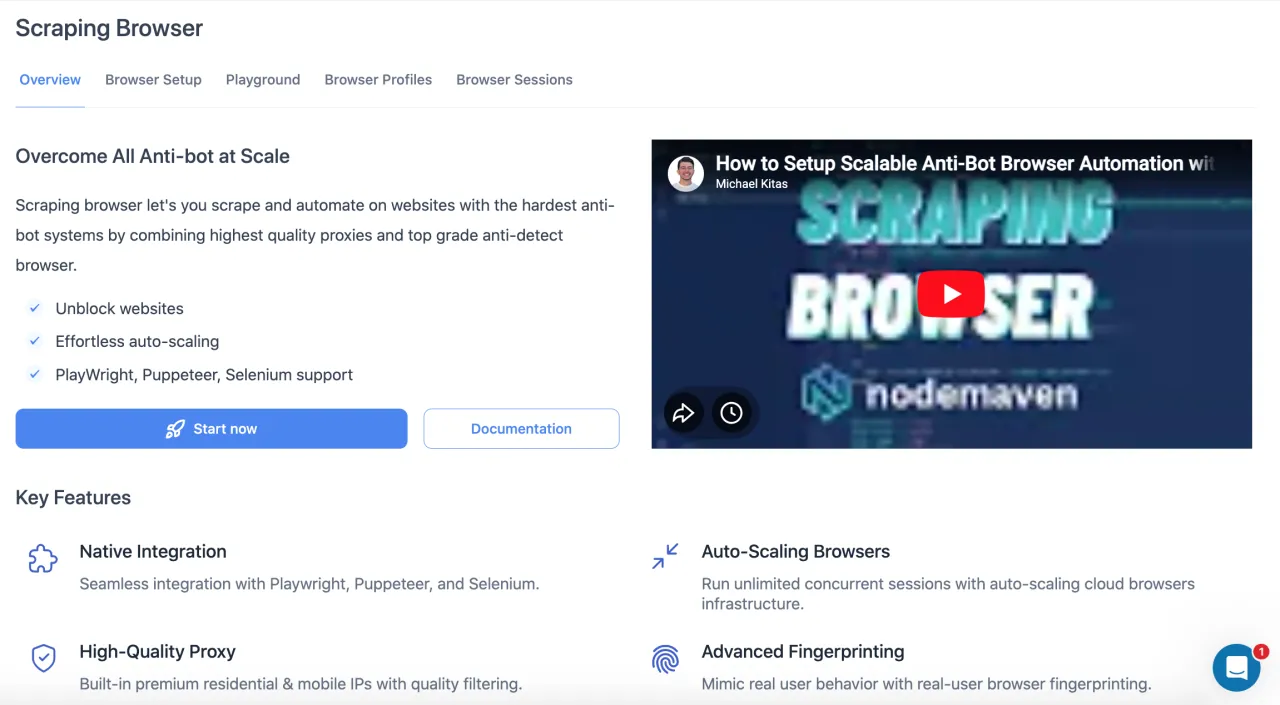 NodeMaven has a separate tool called Scraping Browser, designed for working with the most "protected" websites. Essentially, it is a cloud browser with auto-scaling, built-in residential and mobile proxies, and advanced anti-detect features. It integrates natively with Playwright, Puppeteer, and Selenium, supports full JavaScript rendering, and allows session debugging via DevTools. It is suitable for complex dynamic scraping and large-scale automation.