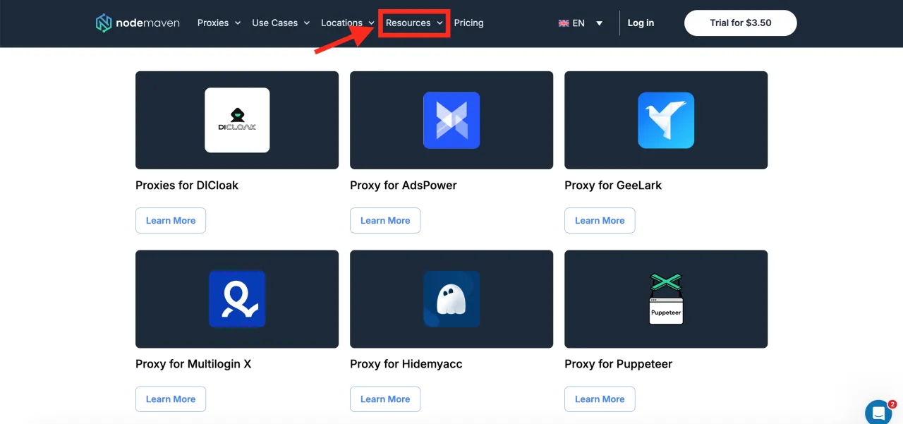 Overall, the integration process is not complicated, and NodeMaven proxies can be easily integrated into any system. There are also simple guides from the NodeMaven team that help integrate their proxies into third-party products. You can find these guides in the "Resources" menu section.