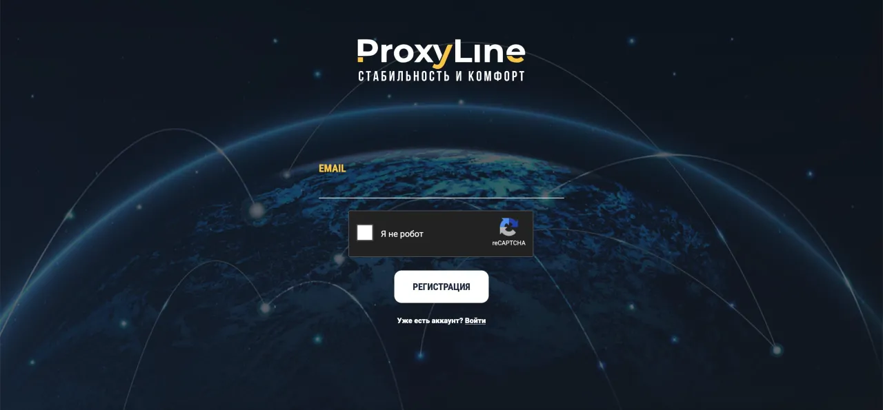 Для этого перейдите на сайт https://proxyline.net/ и нажмите кнопку "Регистрация" в правом верхнем углу. После этого откроется страница регистрации, где вам нужно будет указать свой email.