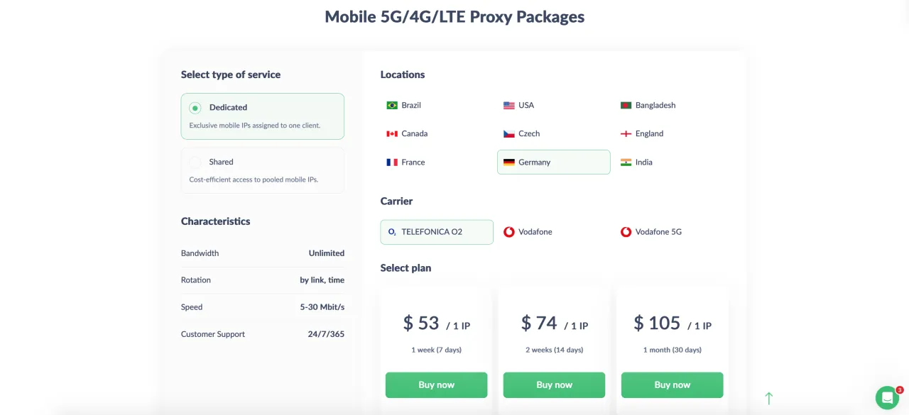 Однією з головних переваг Proxy-Seller є можливість придбати мобільні проксі вже від 7 днів, обрати конкретного мобільного оператора і вибрати між виділеними та загальними мобільними проксі для кращої економічної ефективності — опції, які не пропонують багато інших провайдерів.