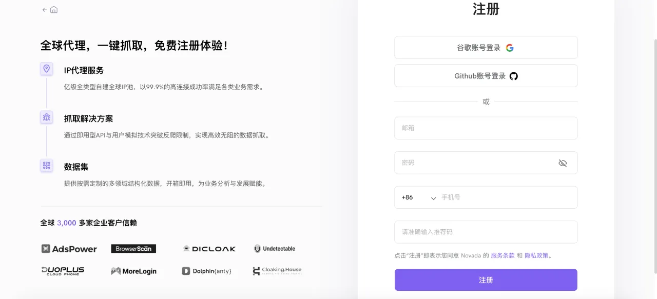 Novada是一家总部位于德国的新代理提供商。公司提供多种类型的代理,量大有折扣,并支持多种支付方式。此外,Novada还以直观的界面和额外的数据收集工具而著称。
