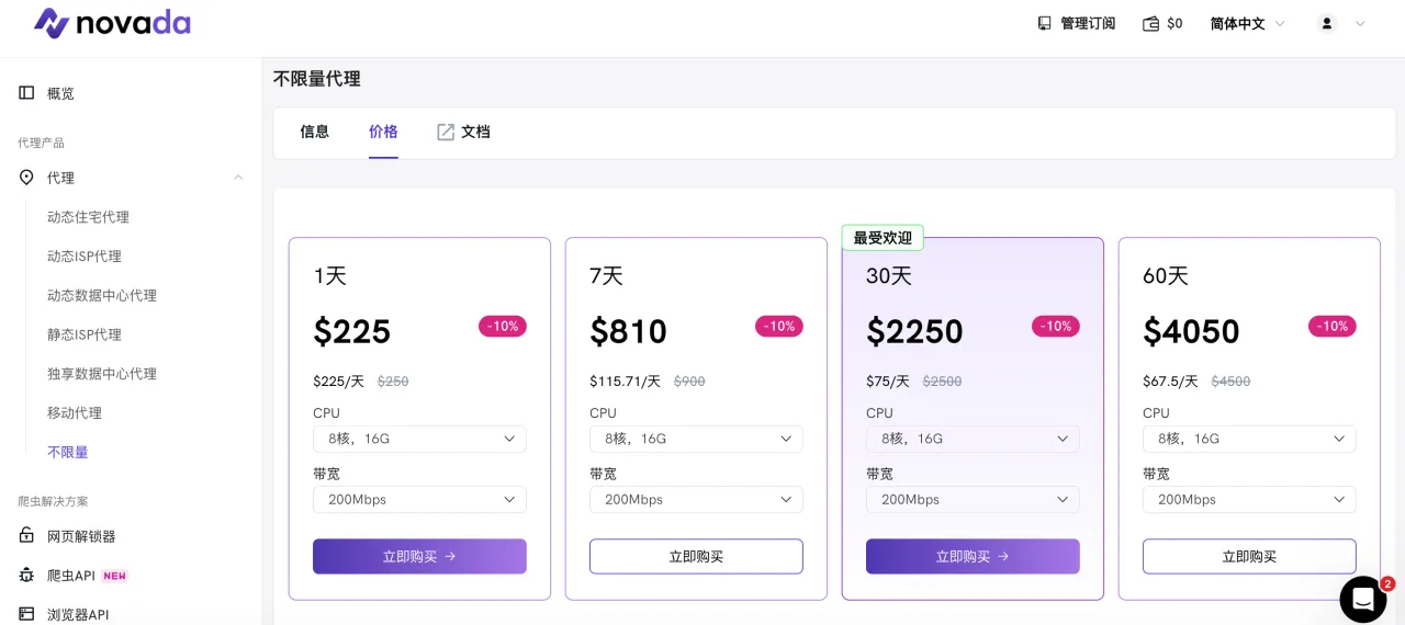 通过购买Novada的专用数据中心代理,您将获得: